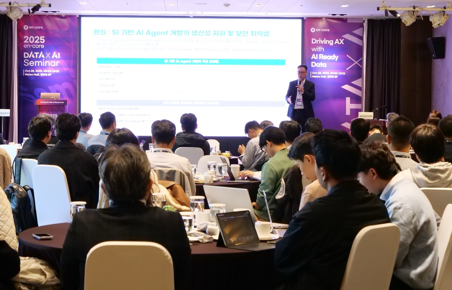 데이터 비즈니스 전문기업 엔코아(대표, 명재호)가 10월28일 기업과 기관의 AI 활용 극대화를 지원하는 AI Ready Data 전략을 제시하는 “2025 encore DATA X AI Seminar’를 양재동 엘타워, 멜론룸에서 진행했다고 밝혔다.
