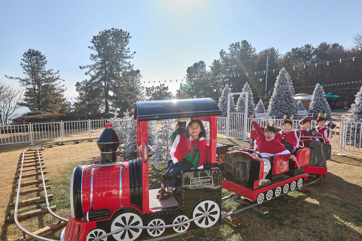 산타 키즈 빌리지 행사장에서 아이들이 매직 트레인에 탑승하고 있다. = 워커힐 호텔앤리조트 제공